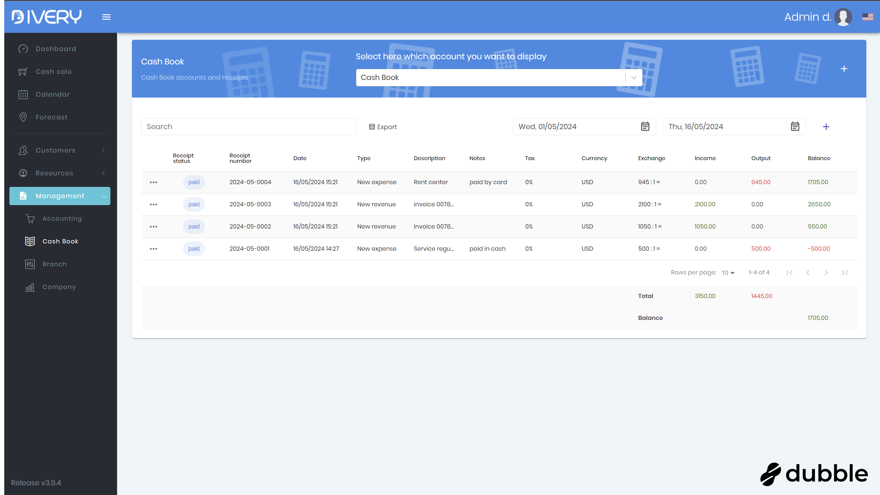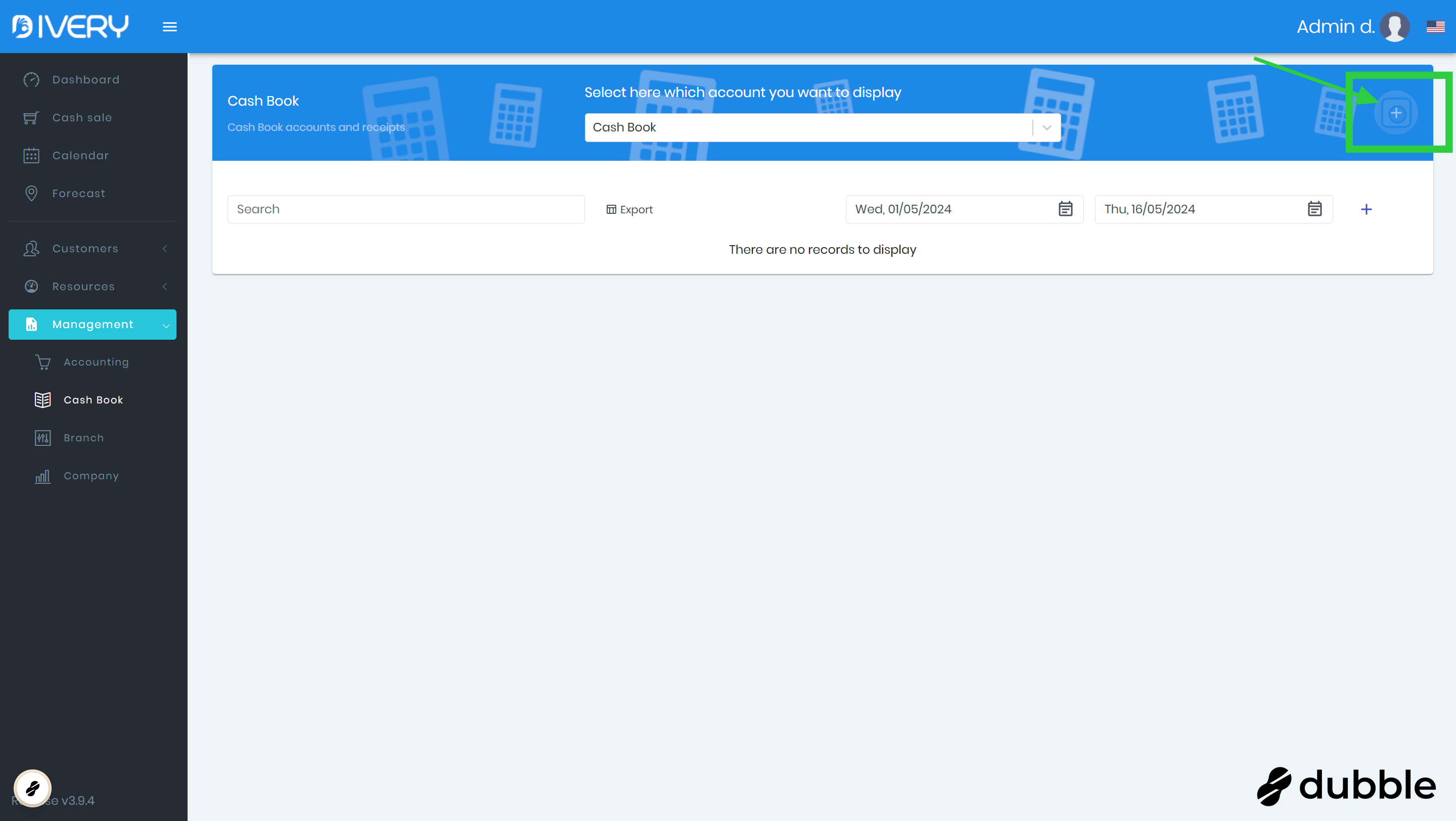 Click on the " Management " button to open the menu. Then click on " Cash book ".