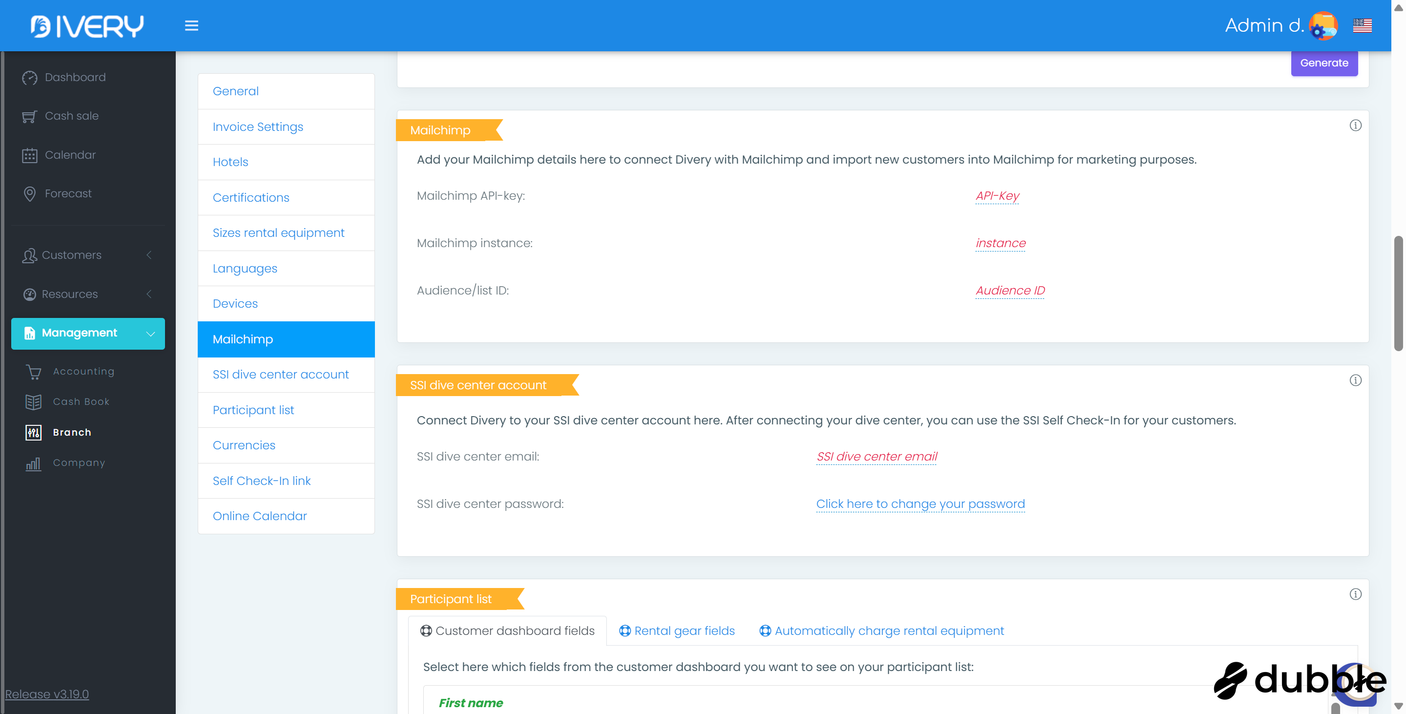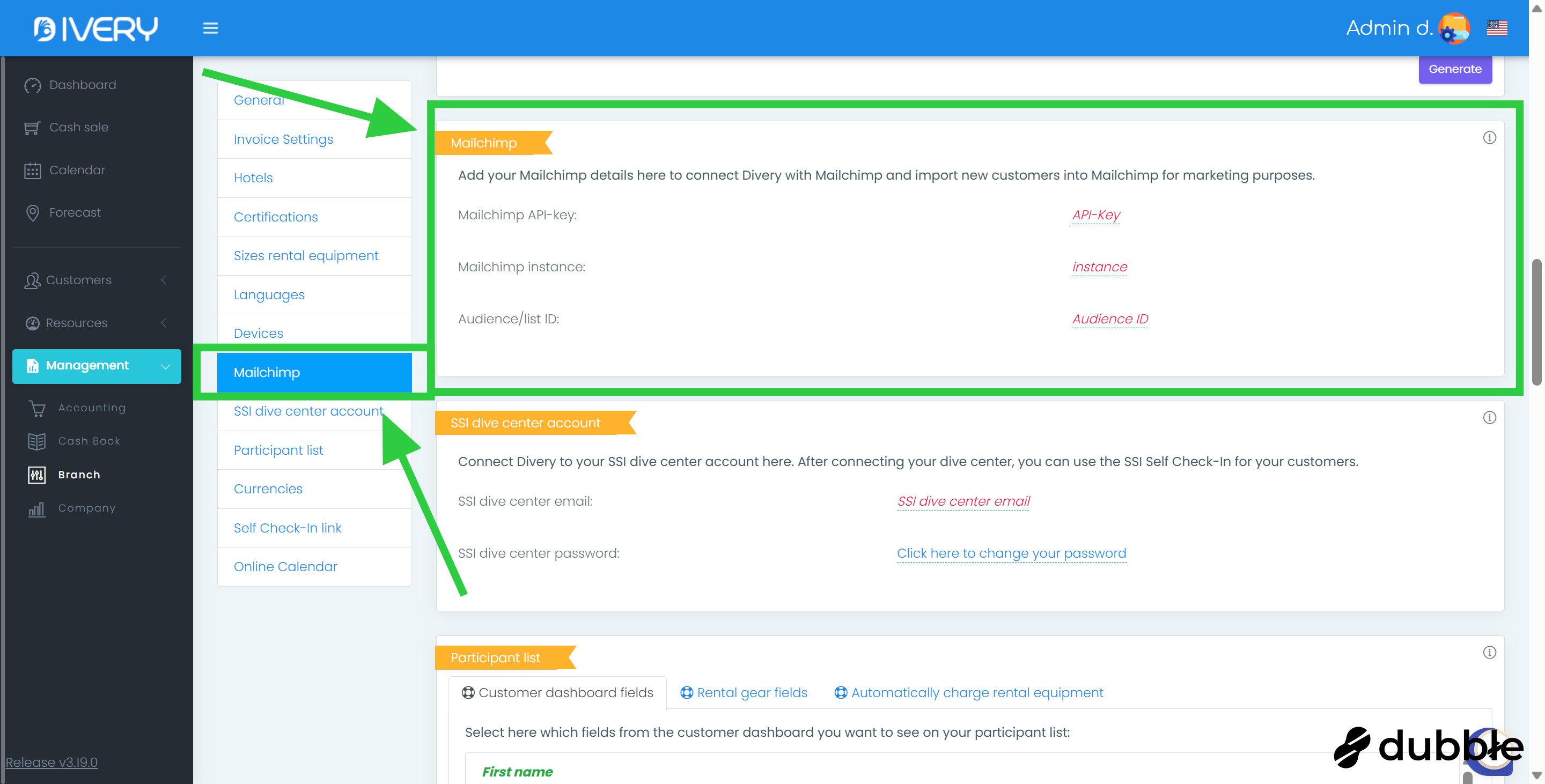 To connect a Mailchimp account, you will need to add the following details in the settings: