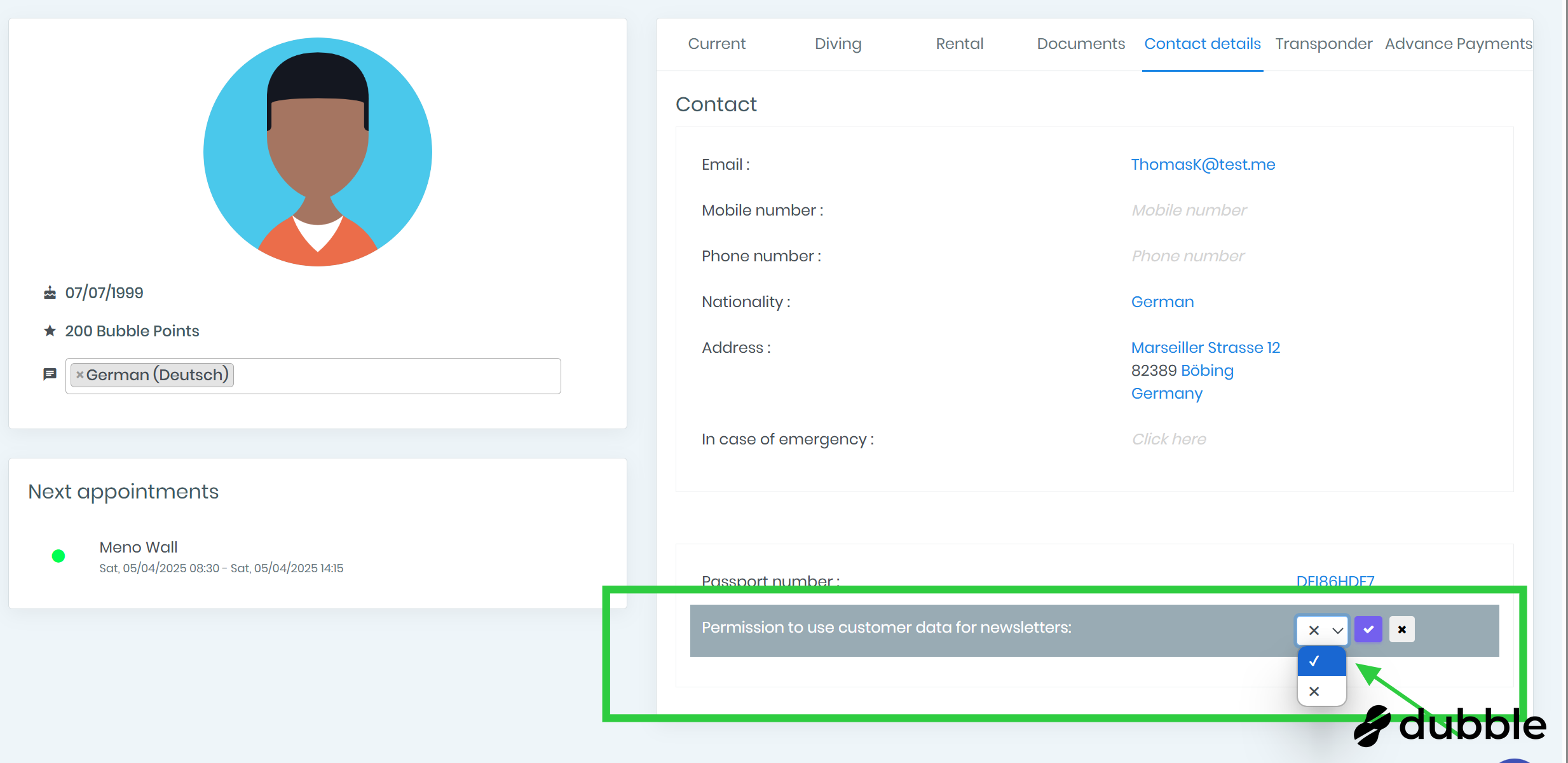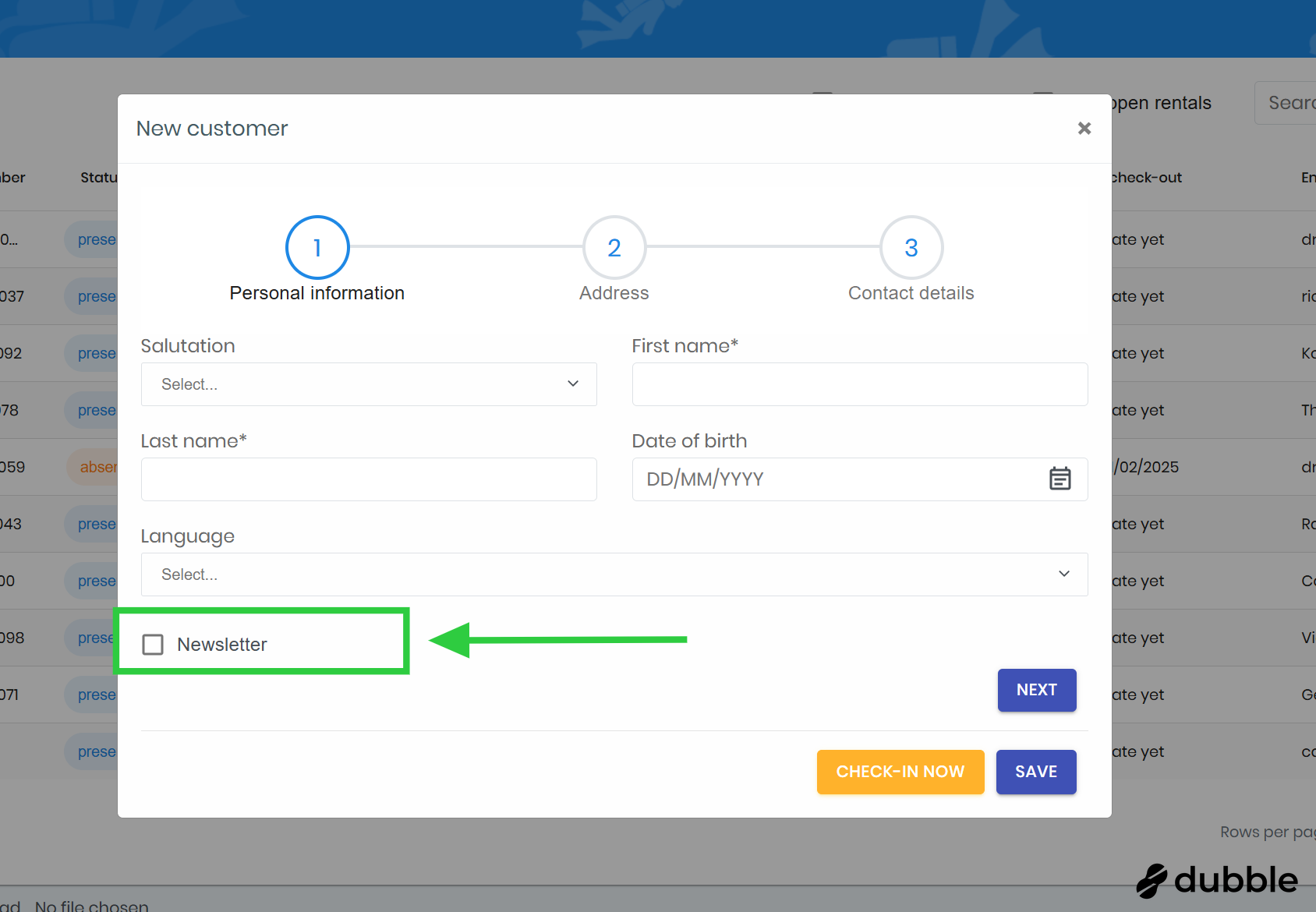Here you can sign them up for the newsletter by selecting the "✔" icon.