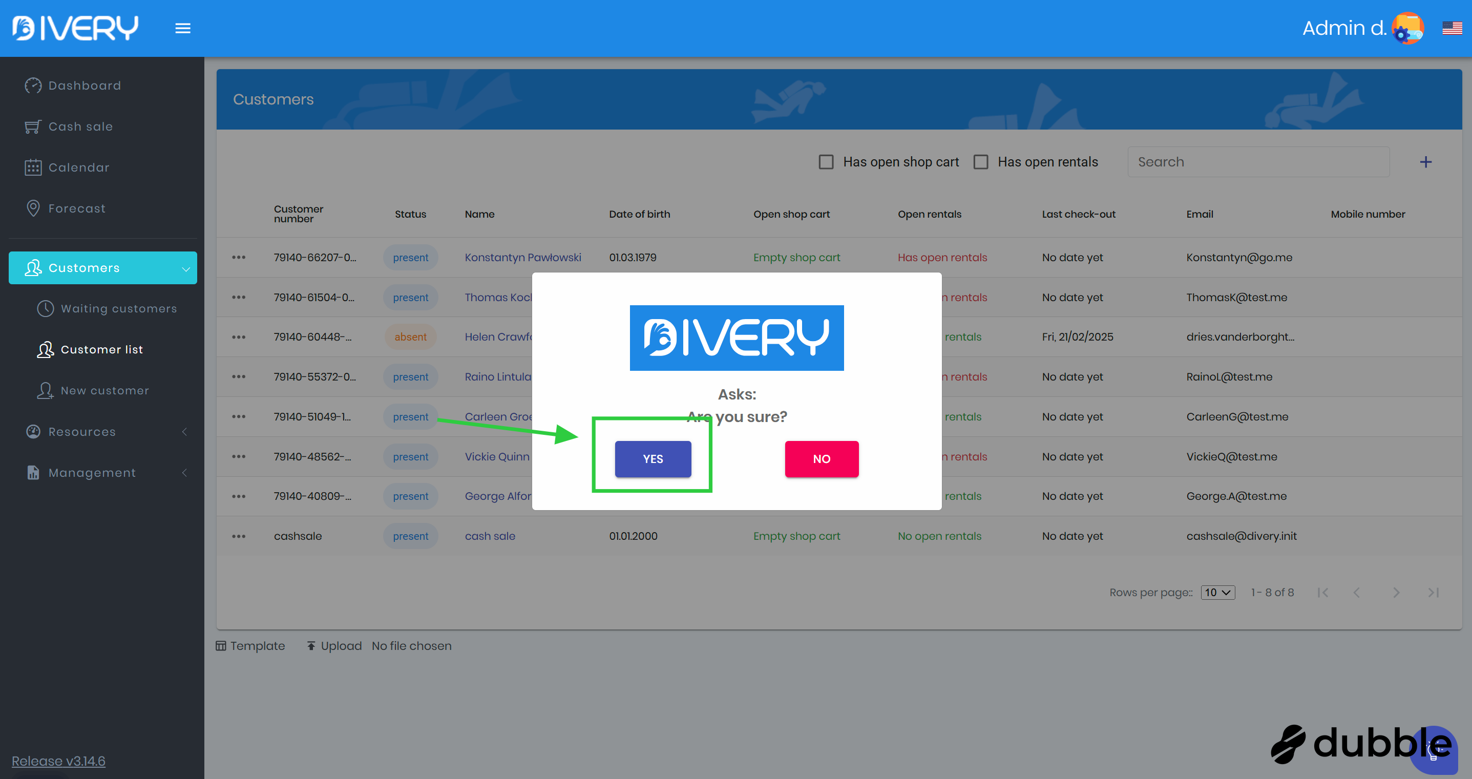 Click " Yes " to delete the customer.