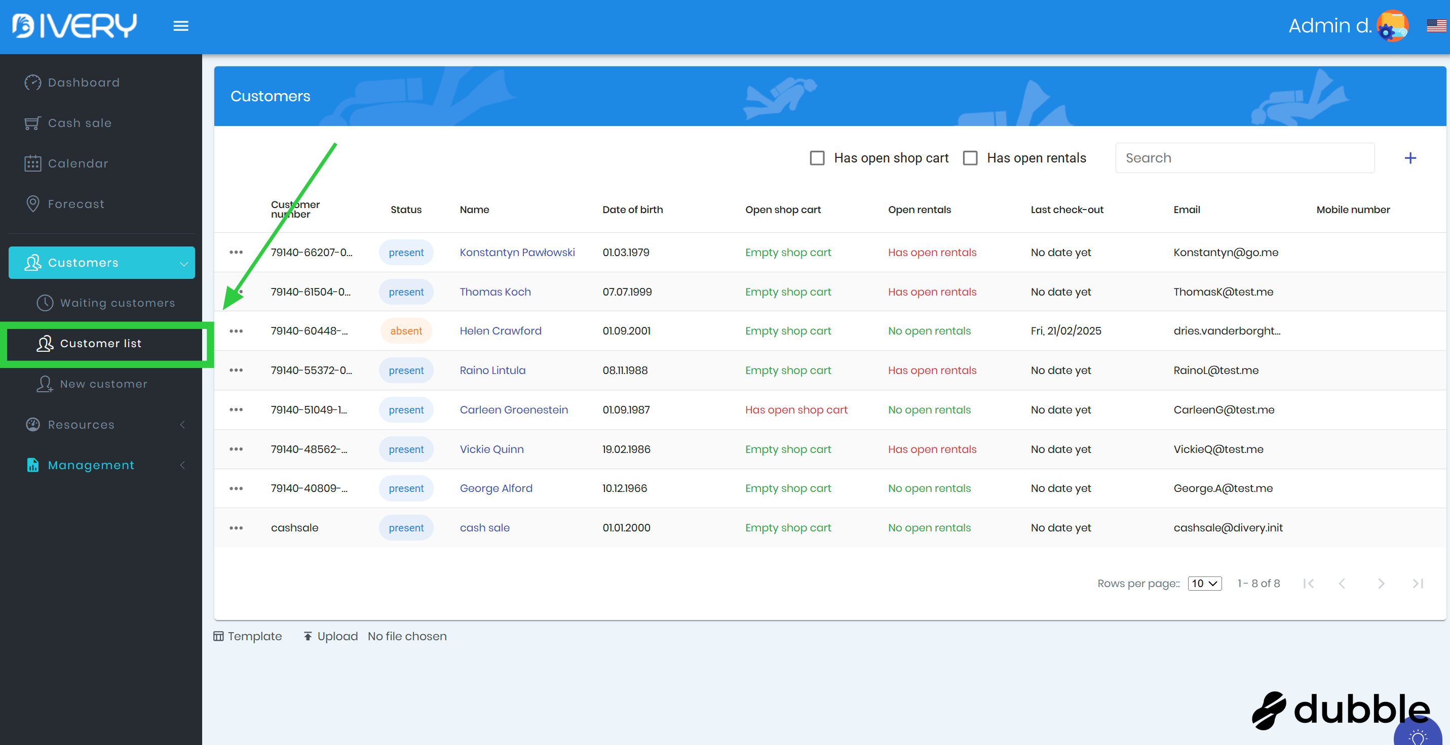 You can find the " Customer list " under the Customers tab.