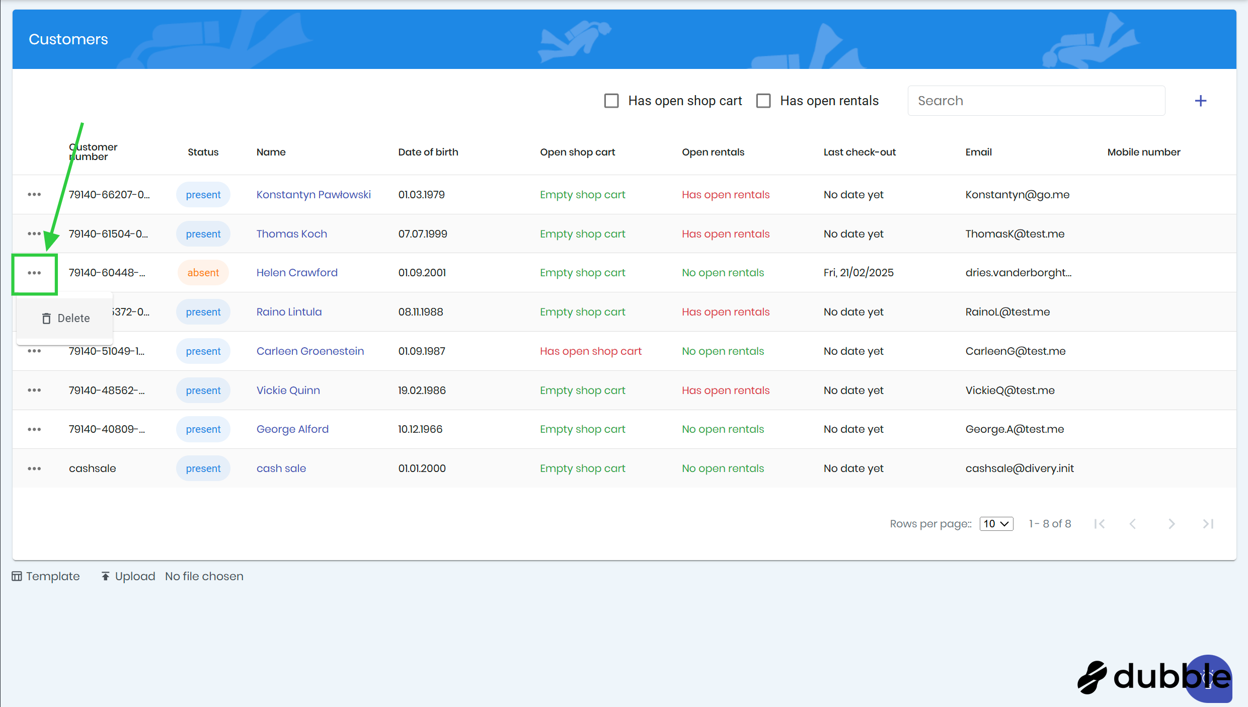 Click on the "..." button of the customer you want to delete.