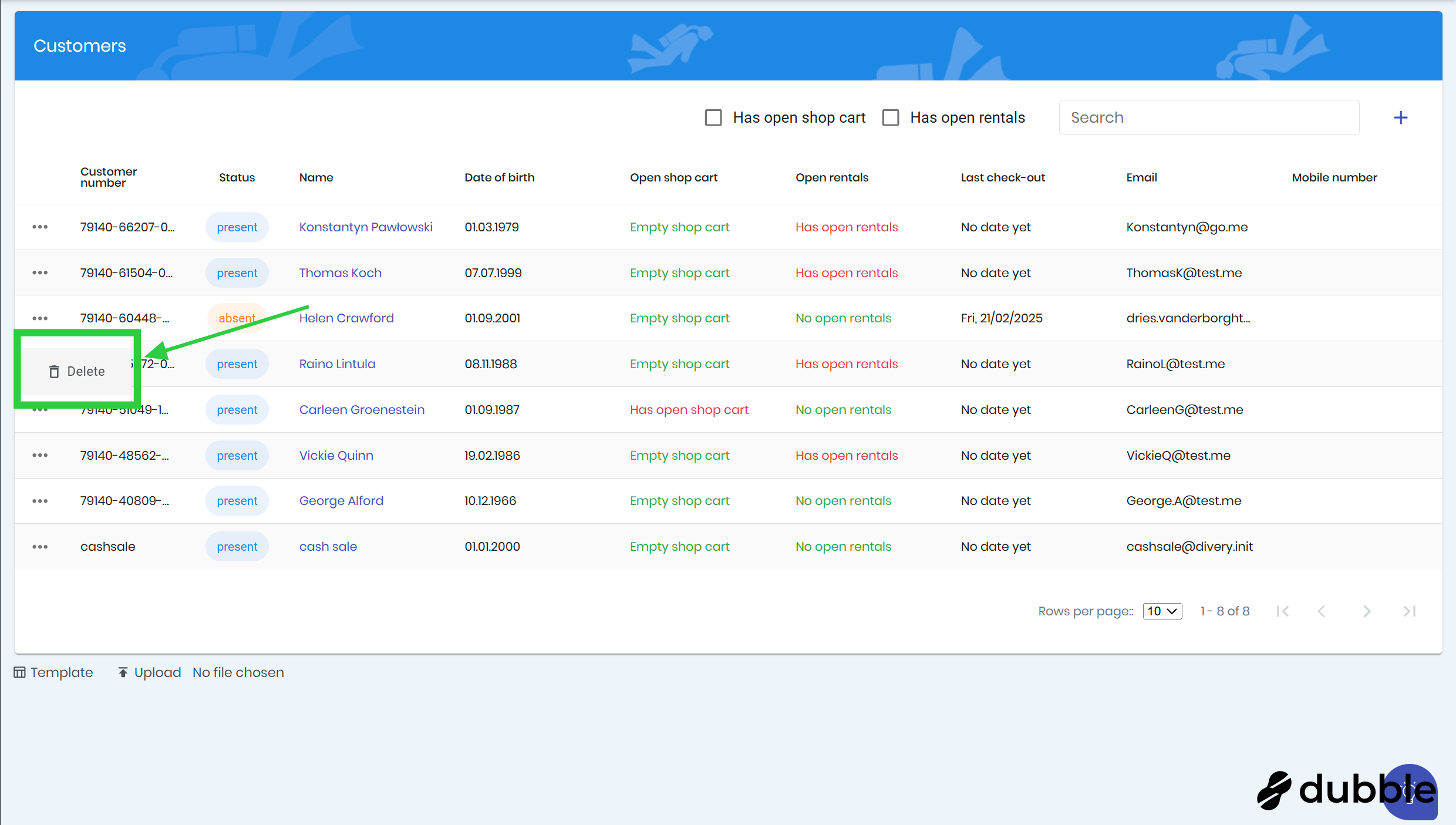 Click on the " Delete " button to remove the customer.
