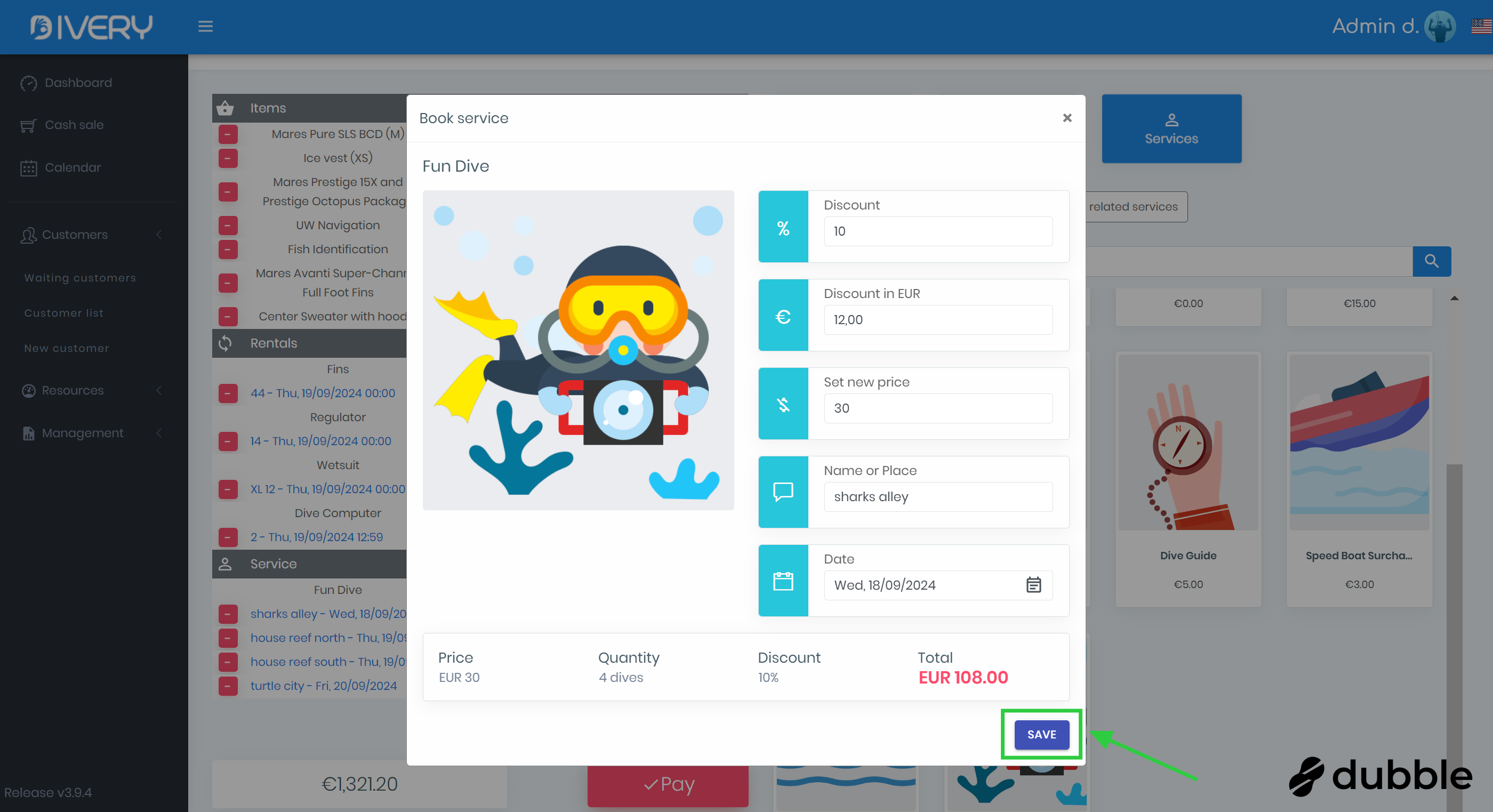 Learn here how to add a service to the shopping cart of a customer. 1. Select the "Services" category Make sure the " Services " category is selected. 2. Find the correct service Find the service that you want to add to the shopping cart. You can use ...