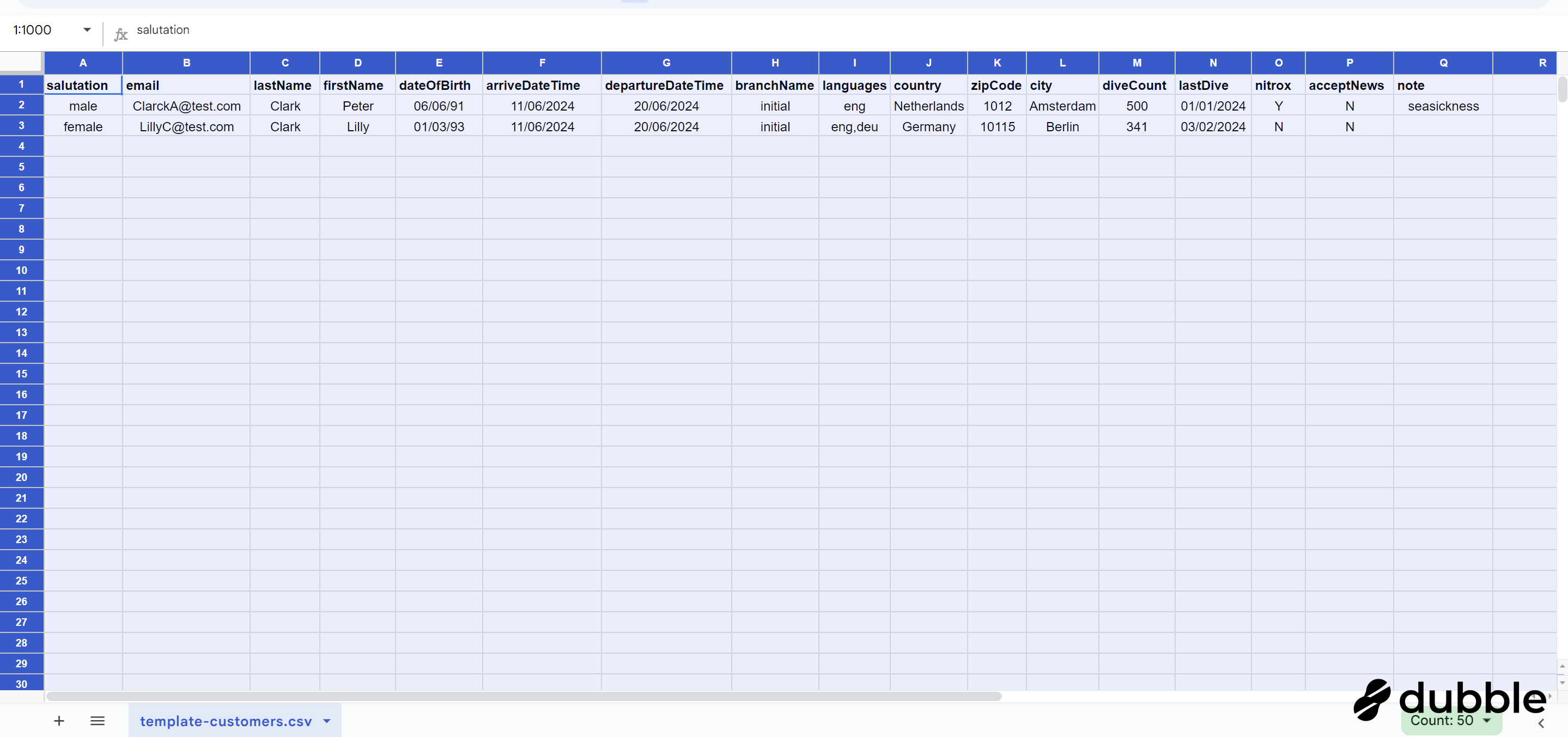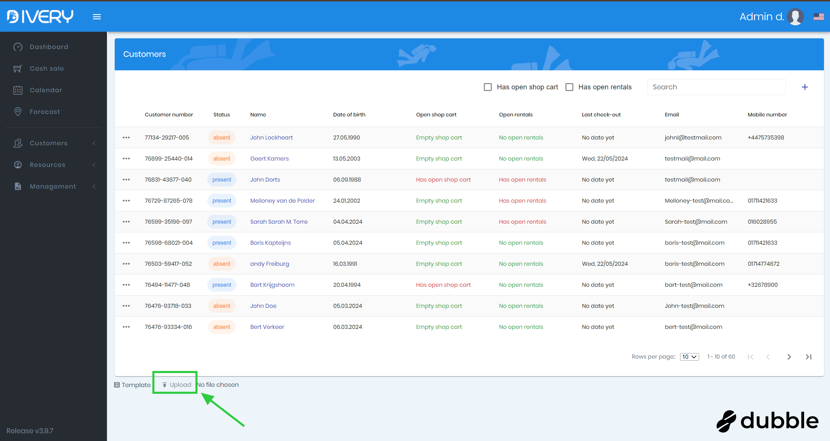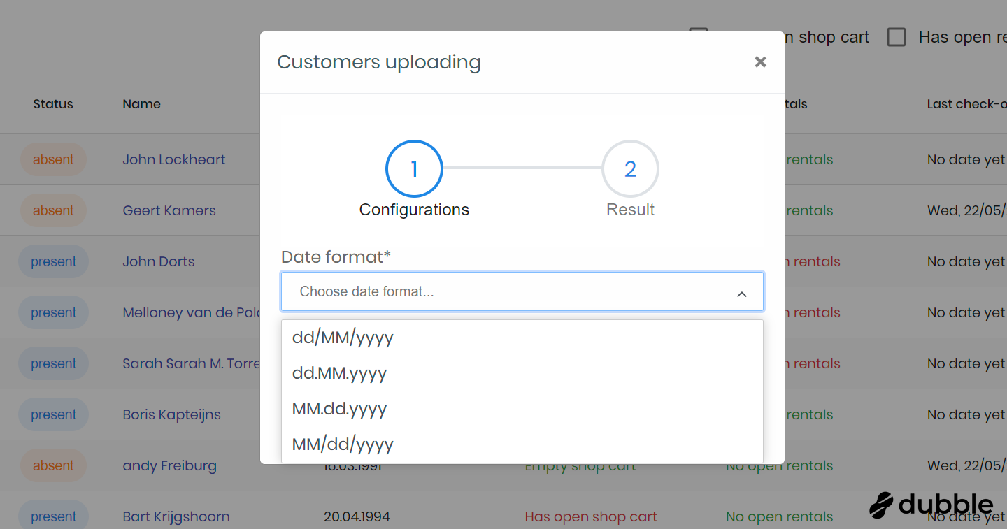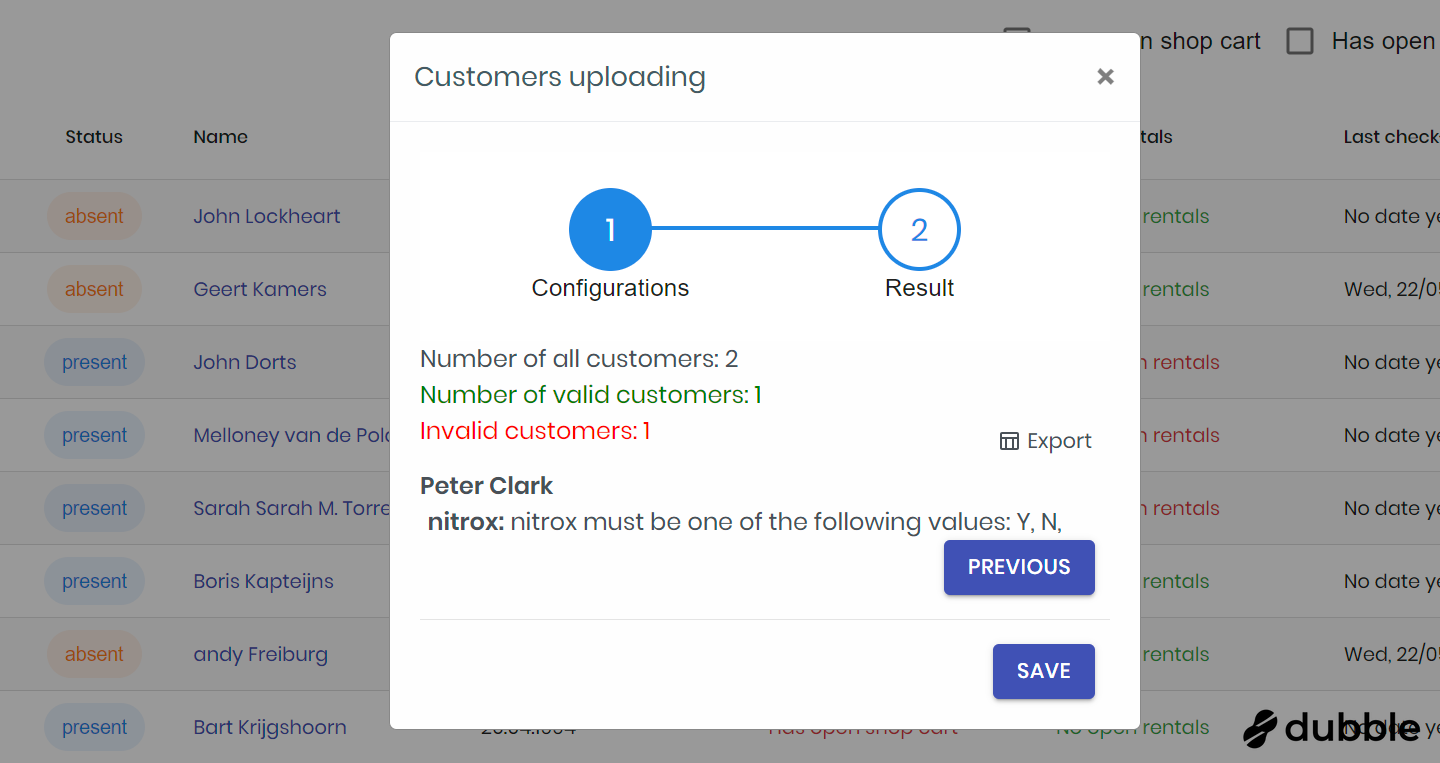 You can see how many customers are uploaded correctly and how many customers have invalid data. For each customer, you can see what the mistake is.