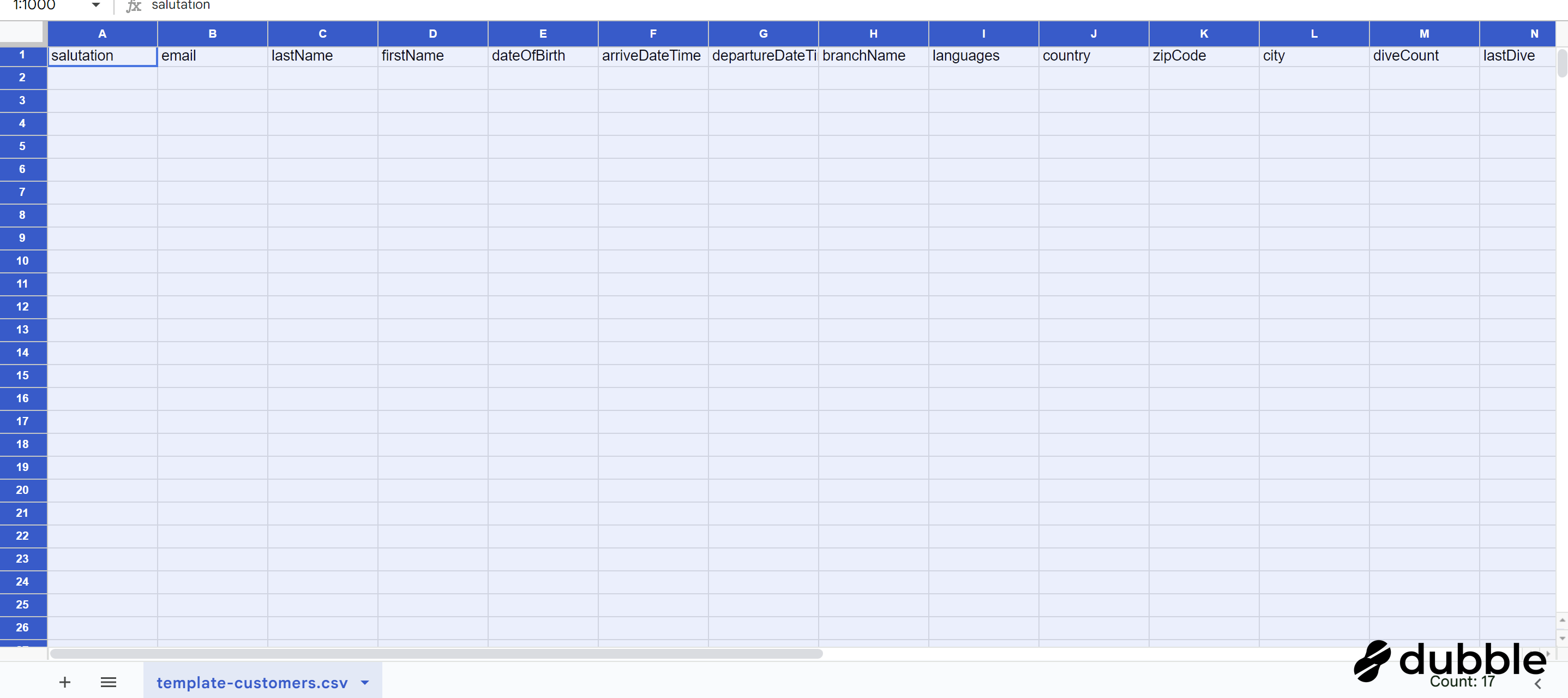 After entering all customer information, save the file and upload it by clicking the " Upload " button below the table.