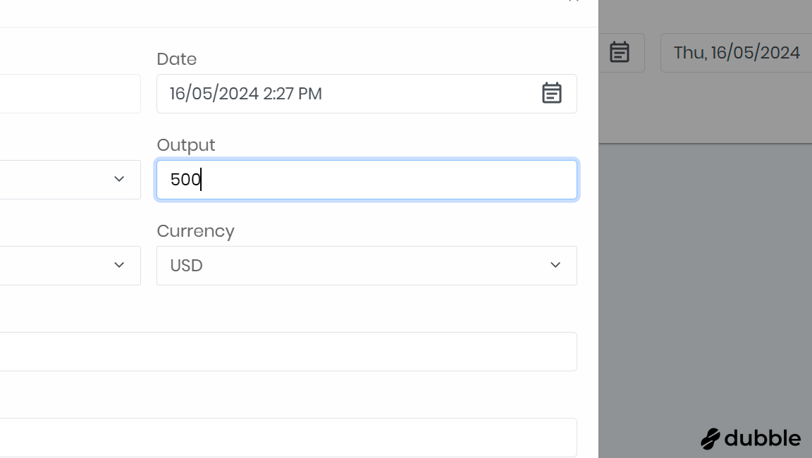 If you select a currency that is not the standard currency in your branch, 2 further fields will appear ("rate" and "exchange"). The rate shows the conversion rate that is used. The exchange shows the amount in the standard currency you have selected in the settings. If you select your standard currency (selected as default) no exchange rate is applied and the 2 additional fields will not be visible.