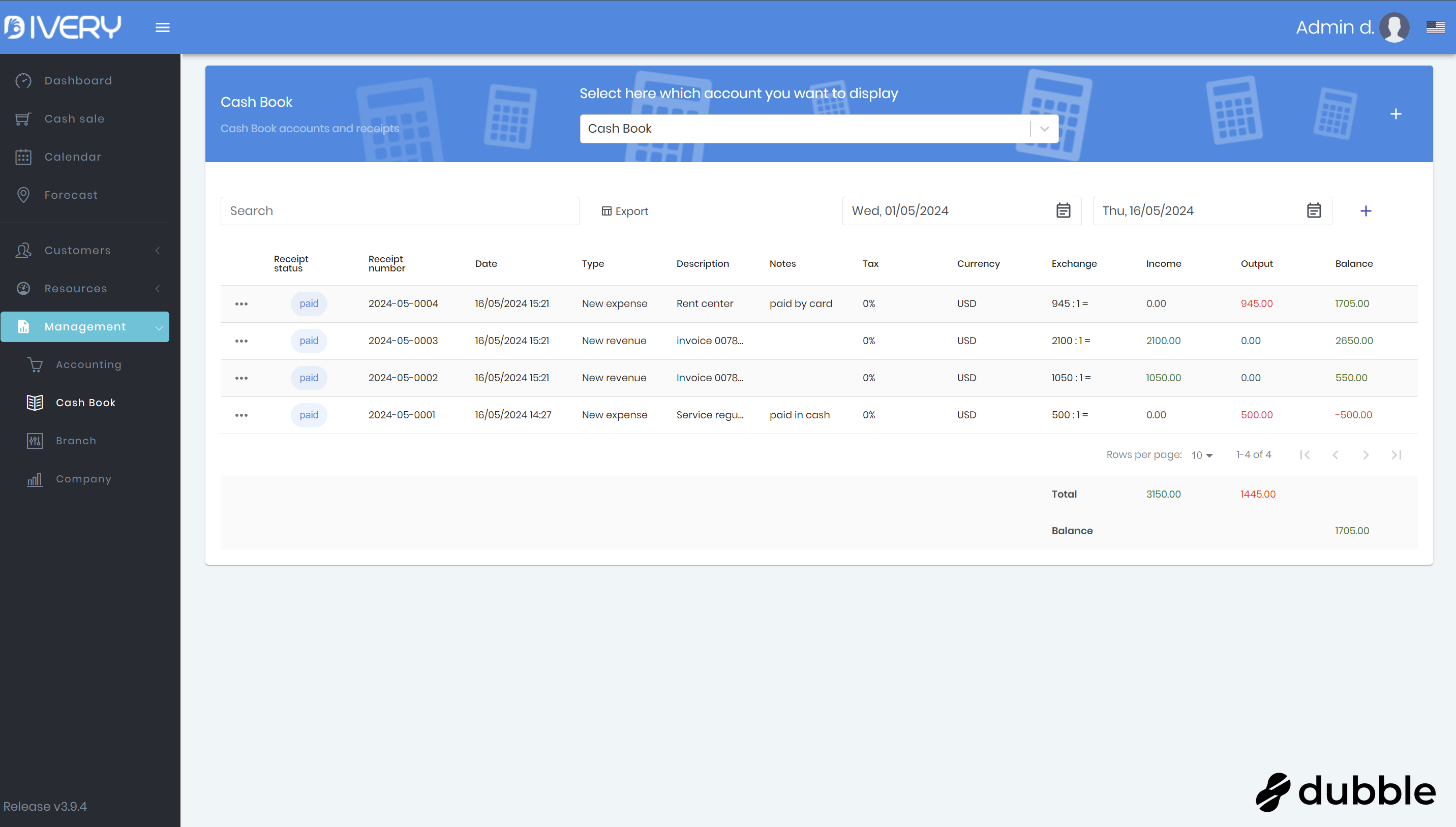 Here you can keep track of your different accounts and the amount in the cash register. You can create your own accounts. Keep track of your income and expenses on each account so you always have the overview. 1. Go to the Cash Book Click on the " ...