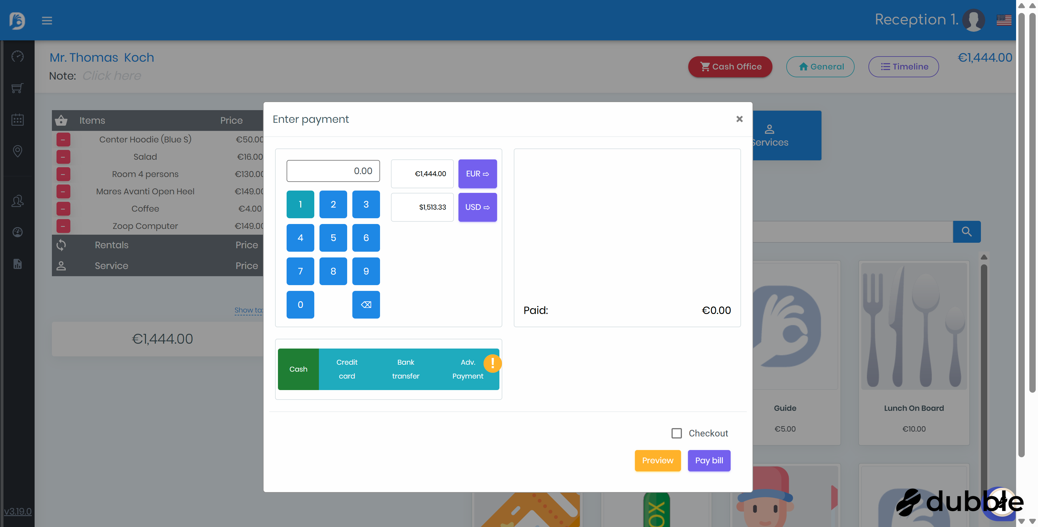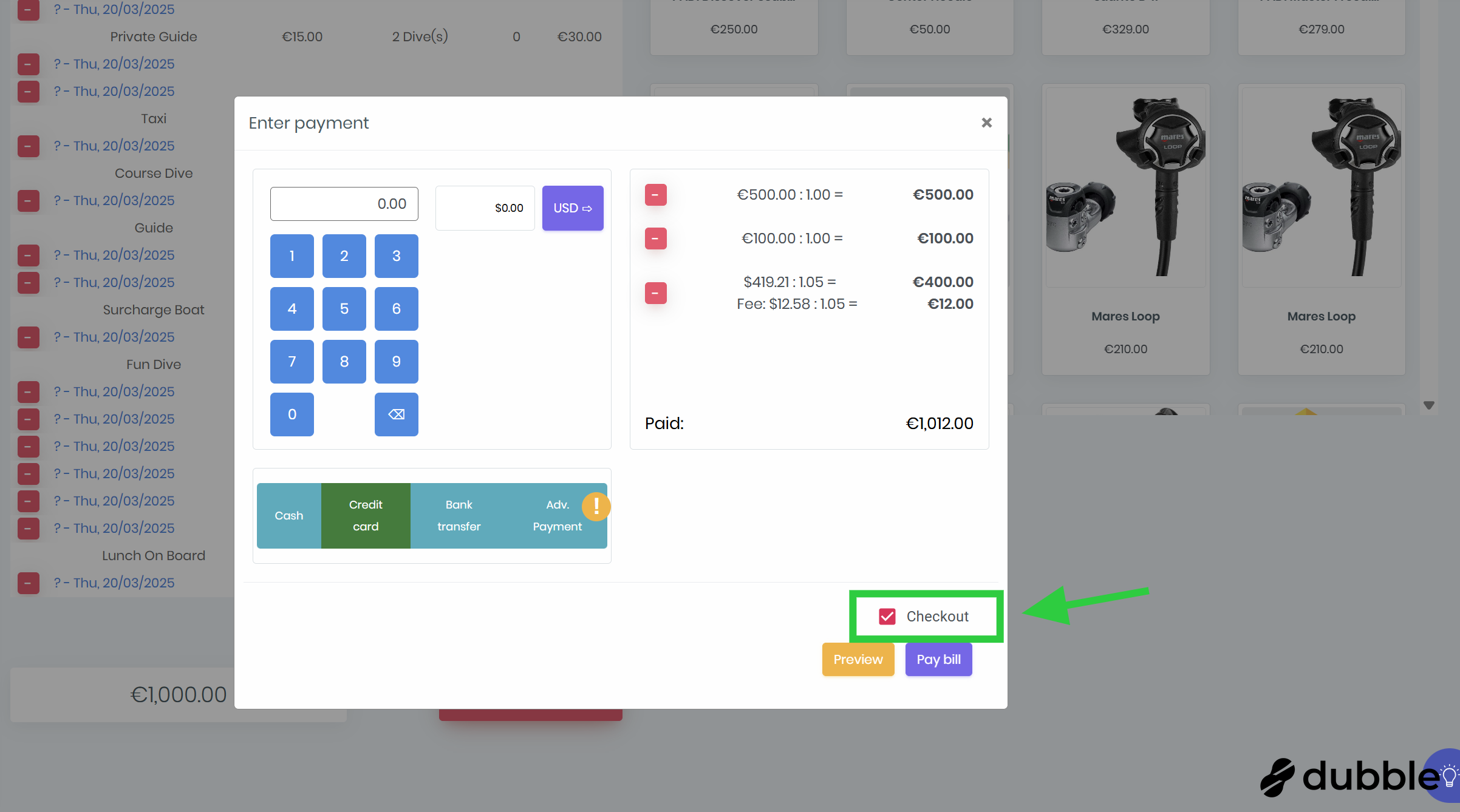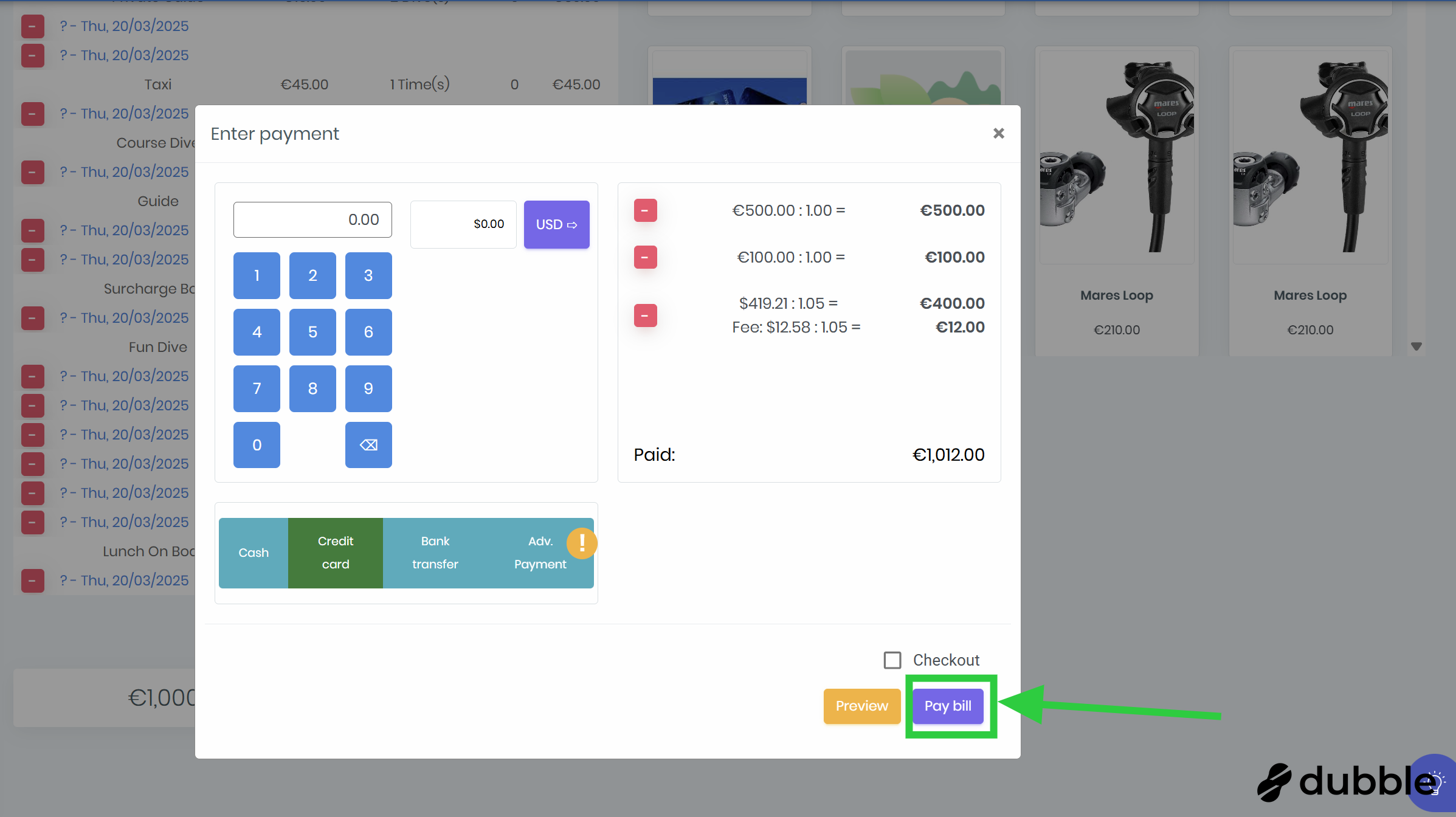 When all the needed payment methods are added, you can click on the "Pay Bill" button to create an official invoice.