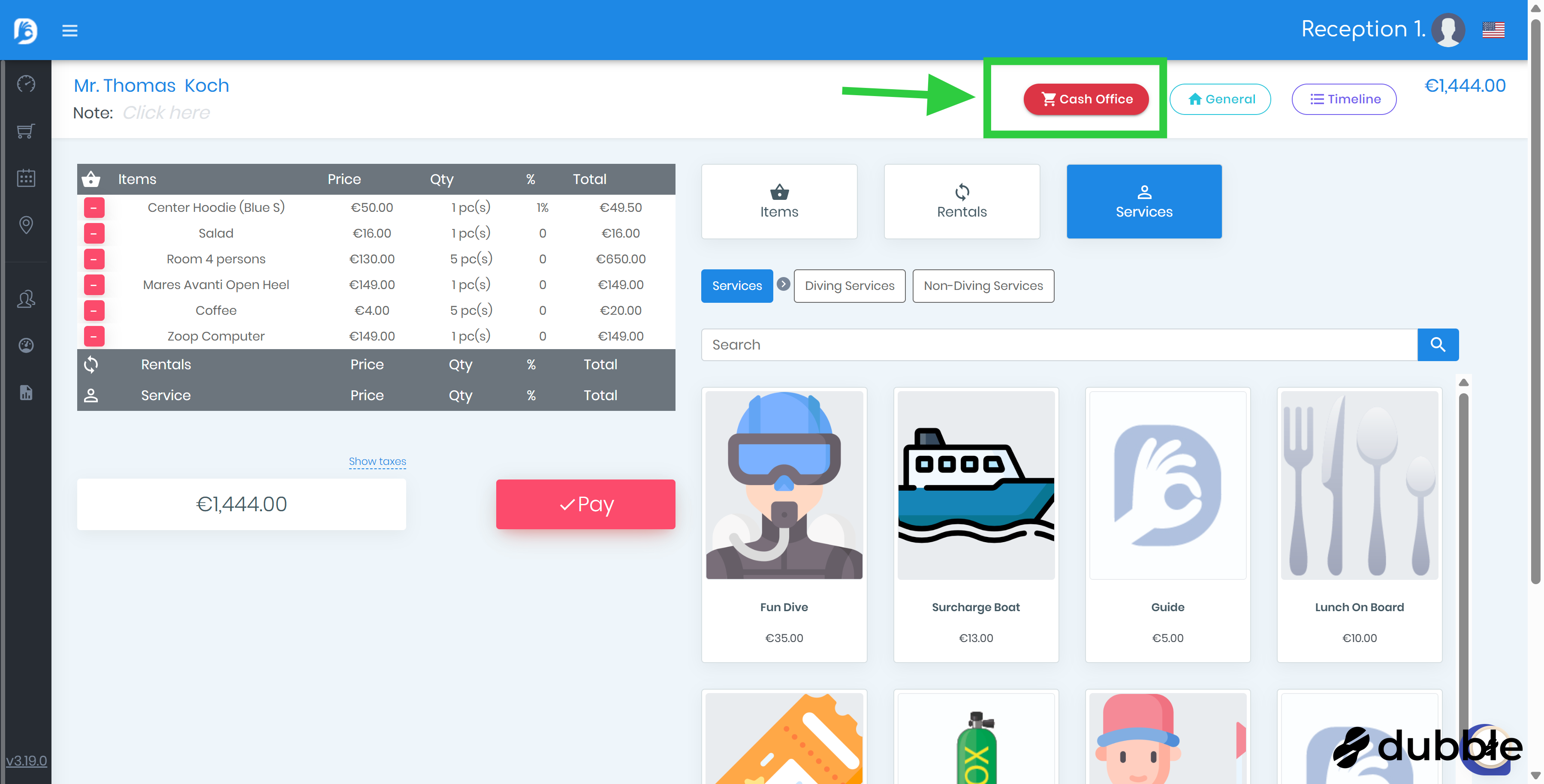 Make sure the cash office is visible. If it's not, click on the "Cash office" button.