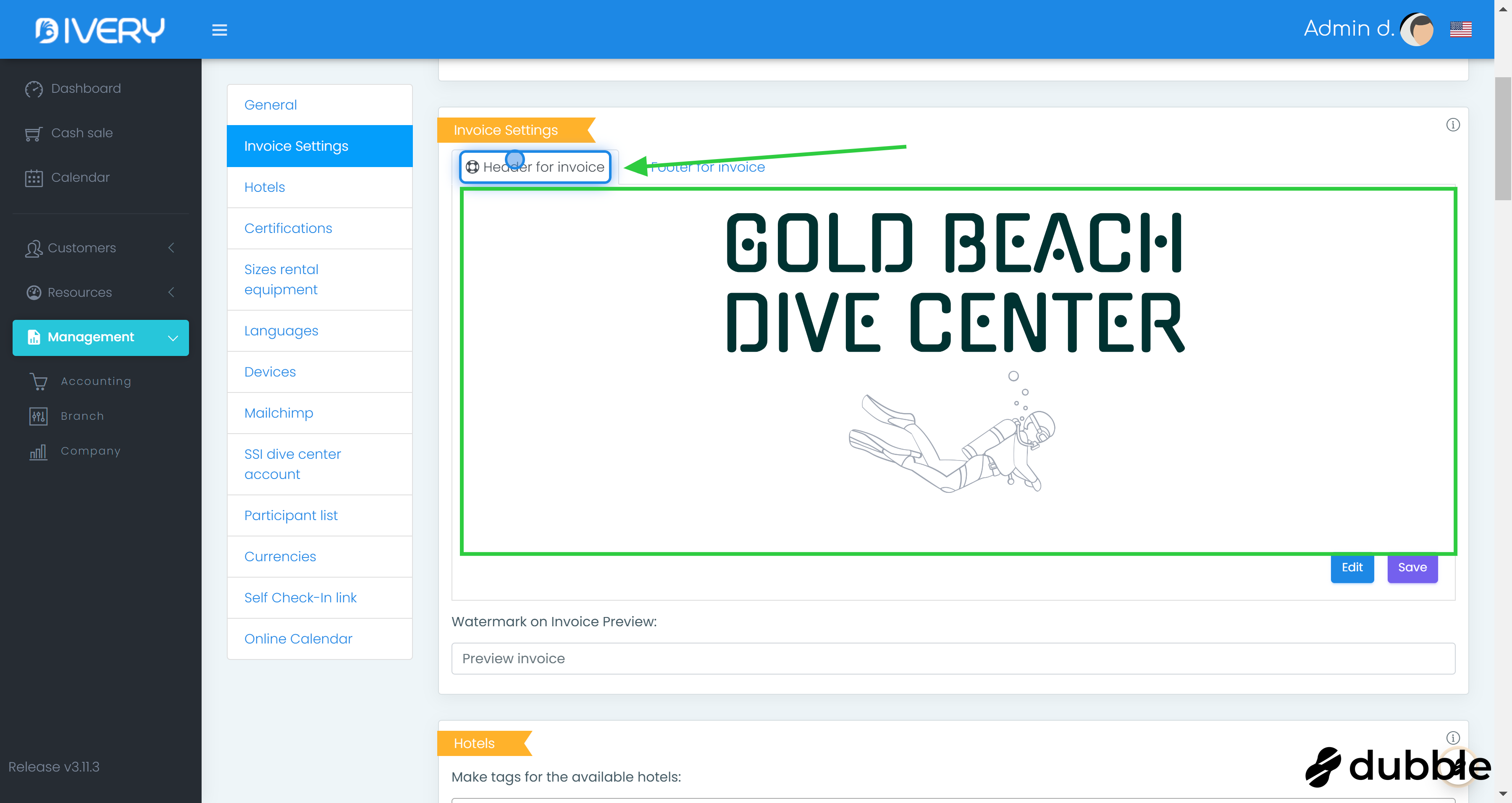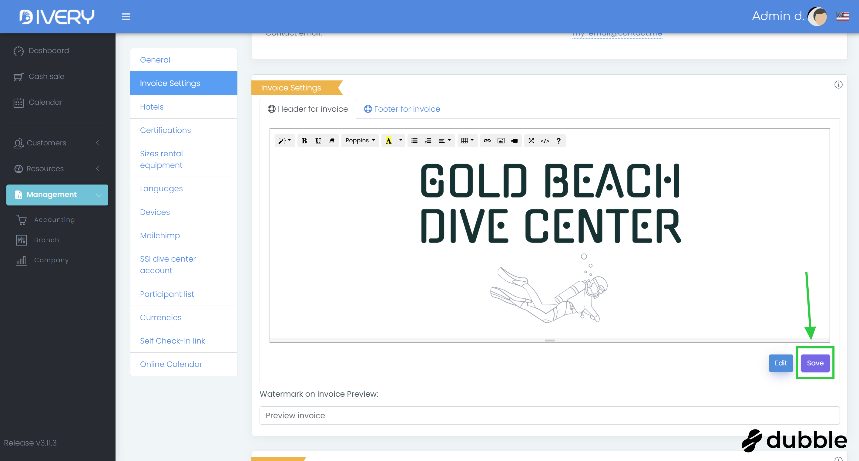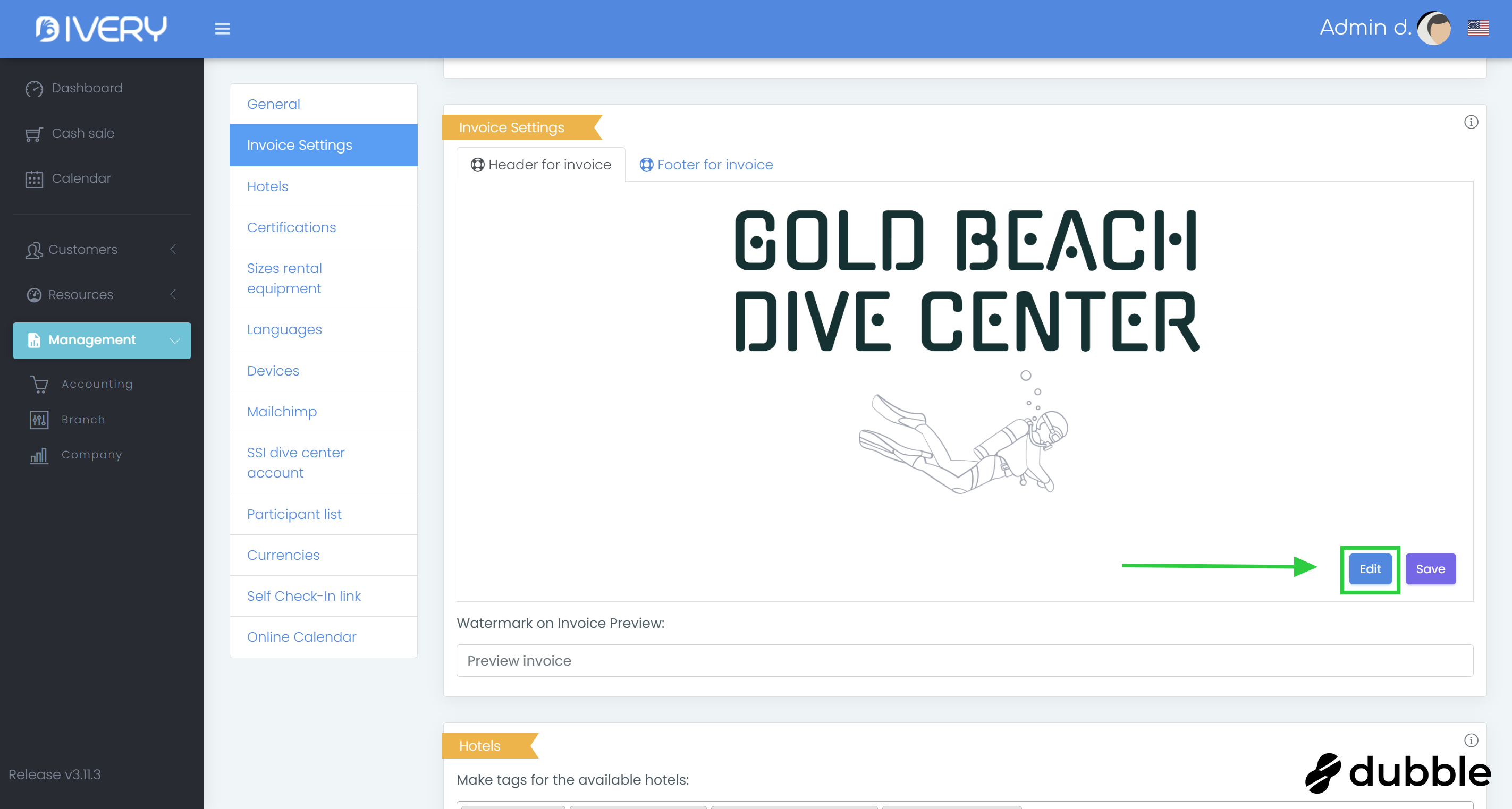 Learn here how to edit, change or create your invoice footer. 1. Go to the Branch settings You can find the branch settings under the management tab. 2. Click on invoice settings Click on " Invoice Settings " or, scroll down until you see the invoice ...
