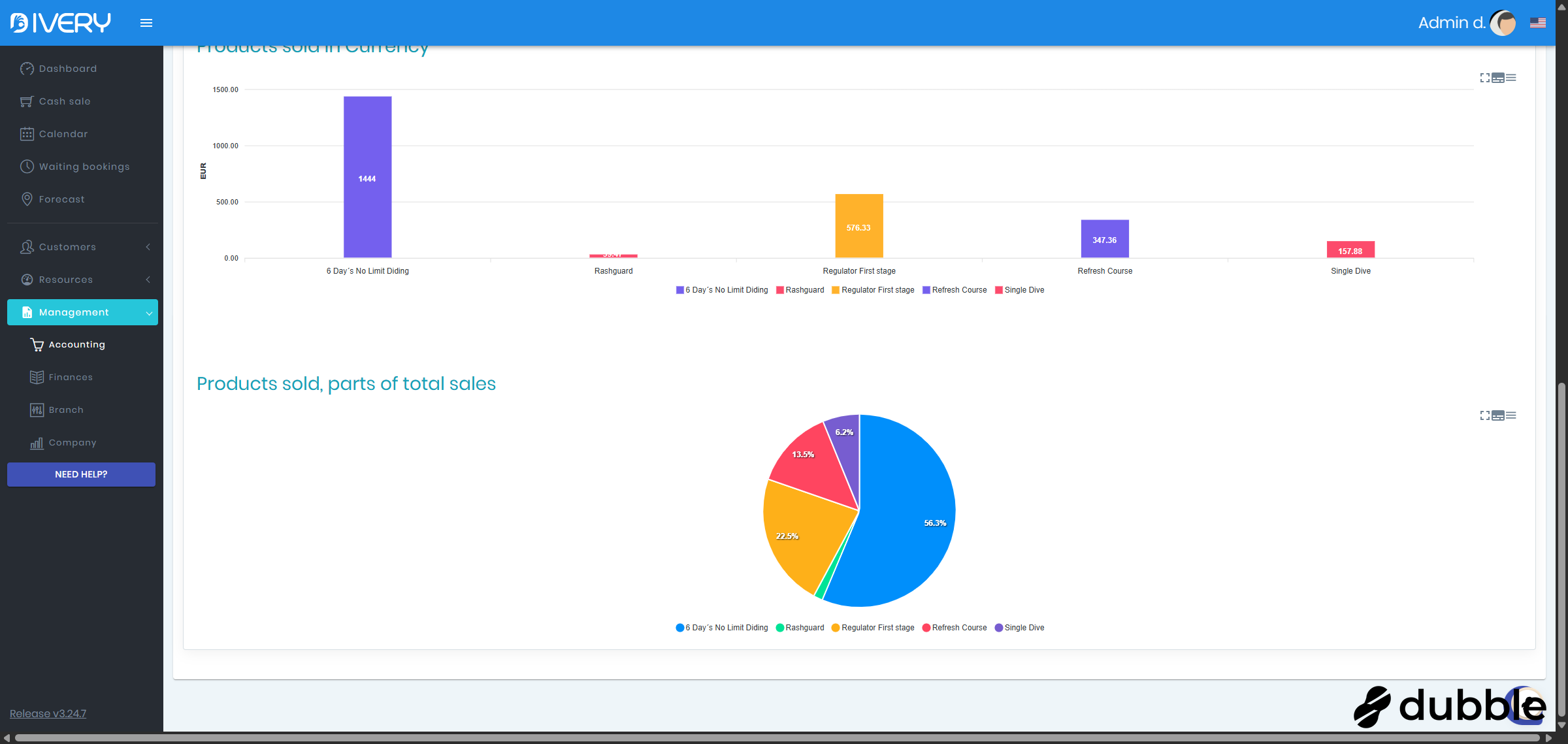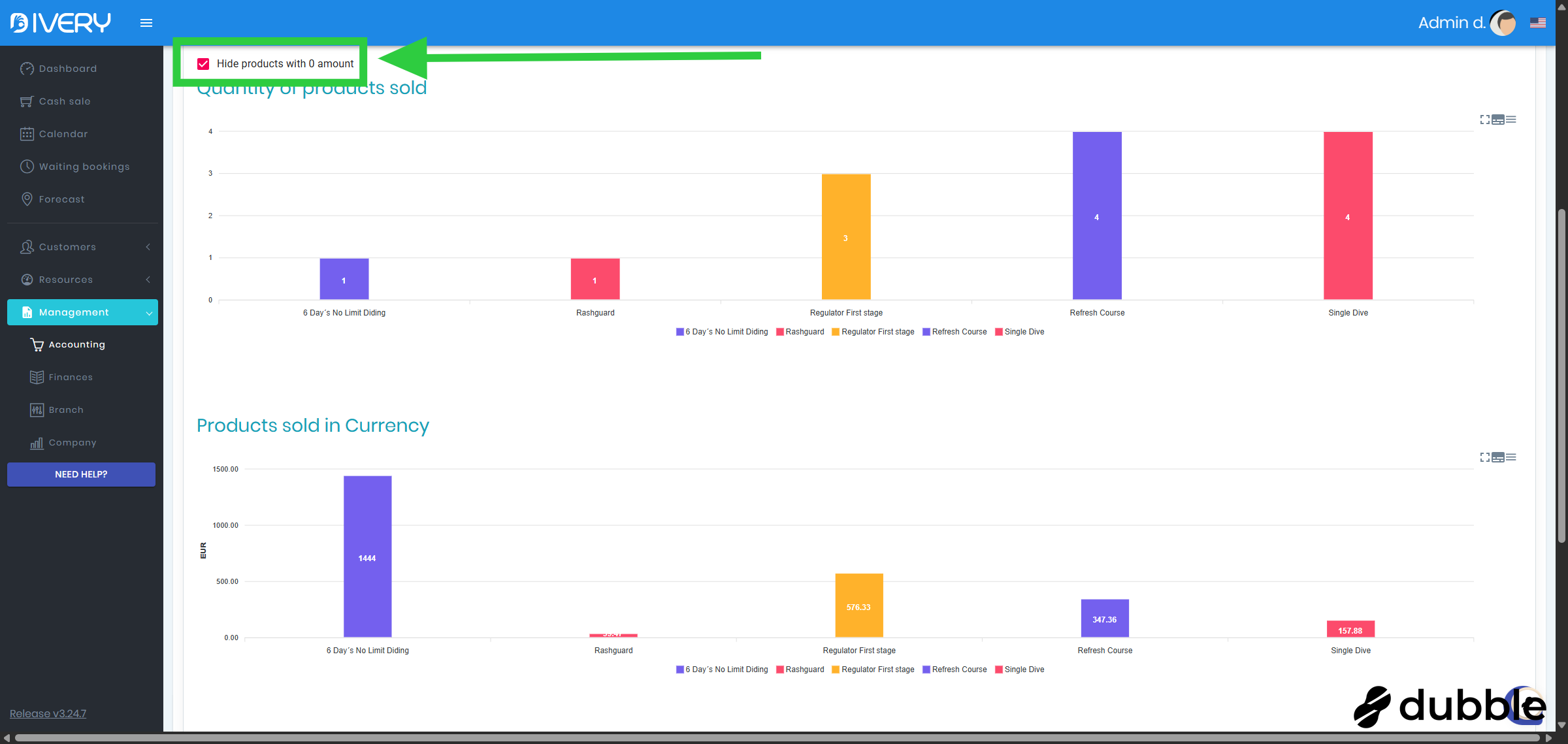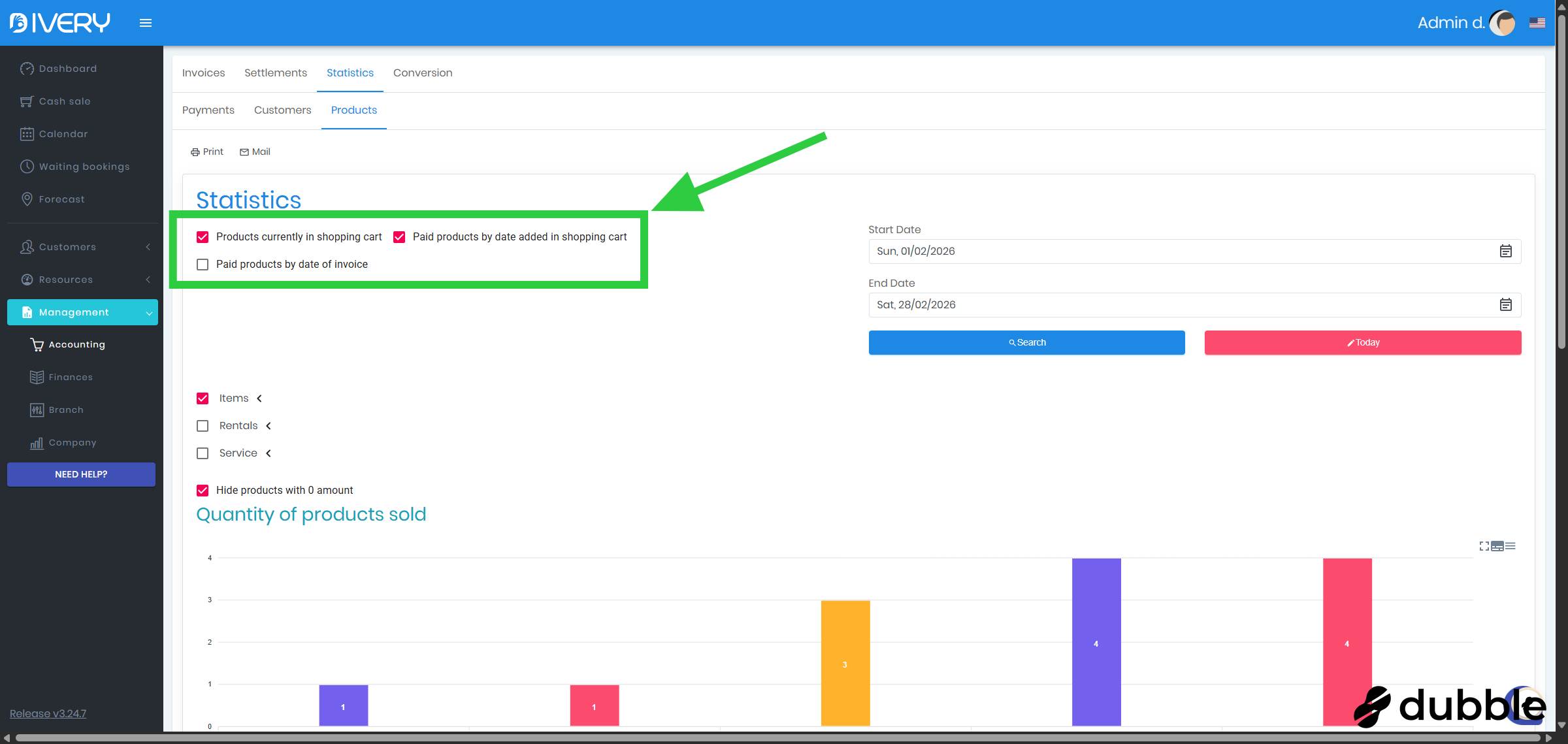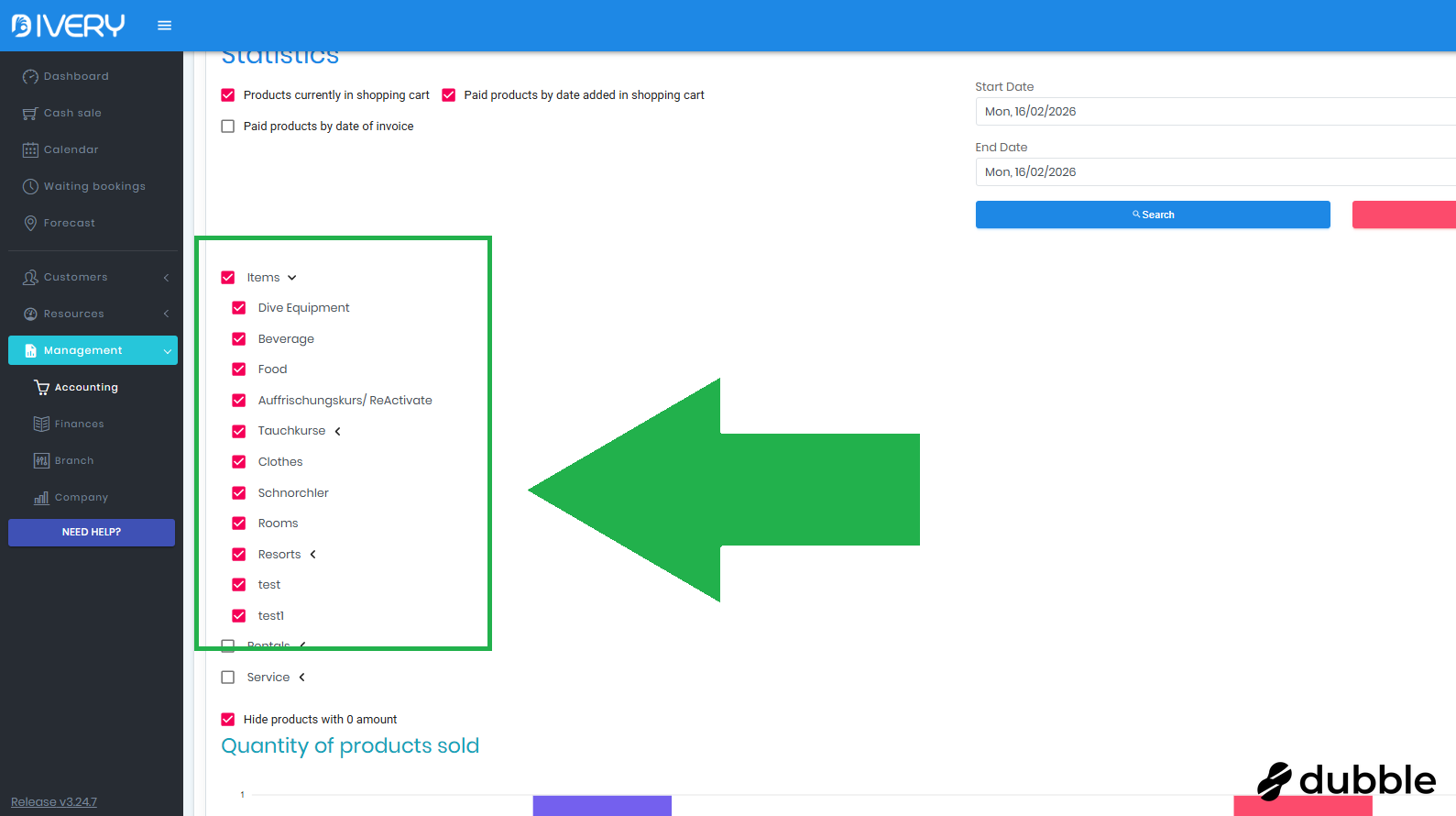 Go to the " Accounting " page by clicking on " Management " and then on " Accounting "