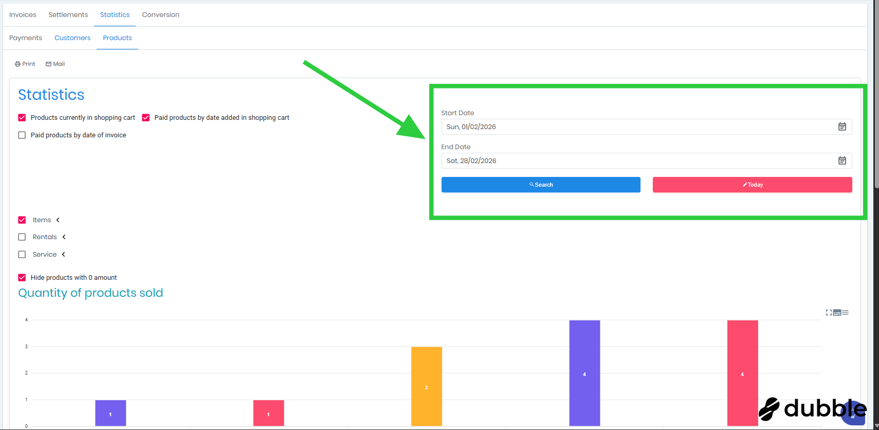 3. Paid products by invoice date